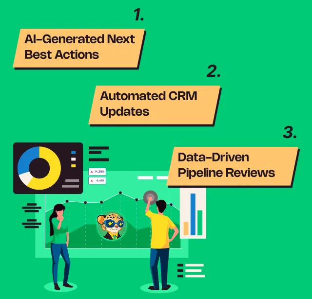 Data-Driven Pipeline Reviews: Managers can review deals based on objective conversational data and discovery scores, not just rep-reported feelings. This leads to more productive coaching sessions, using our AI Copilot you can increase your win rates by up to 50% and close deals with half the demos.