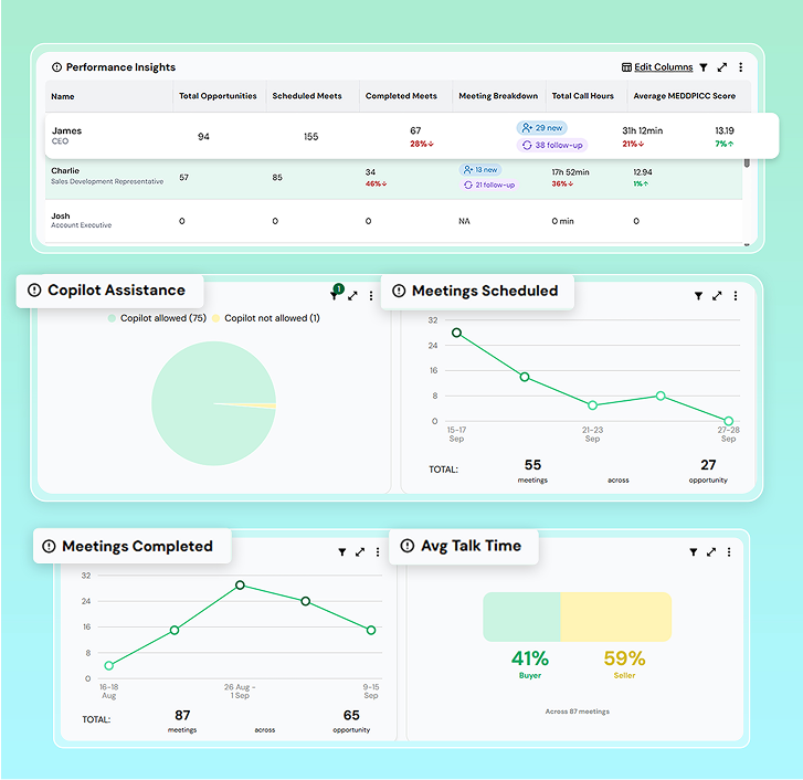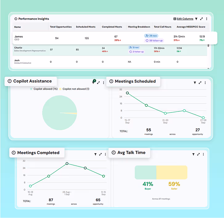 The Co-pilot analyzes buyers' information from CRM, emails, and call recordings. It also allows you to enter your own research on the buyer. Basis this research and using MEDDPICC methodology, Co-pilot provides you with tailored discovery questions for your buyers. It also helps with relevant insights all within a streamlined template.