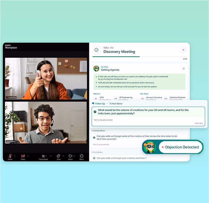 Yes! During live zoom or google meet calls, the Discovery Co-pilot joins your meetings and acts as your virtual sales coach. Pepsales Discovery Co-pilot offers on-the-fly suggestions for managing agendas, handling objections, and asking the right questions to the right stakeholders based on the call’s direction.